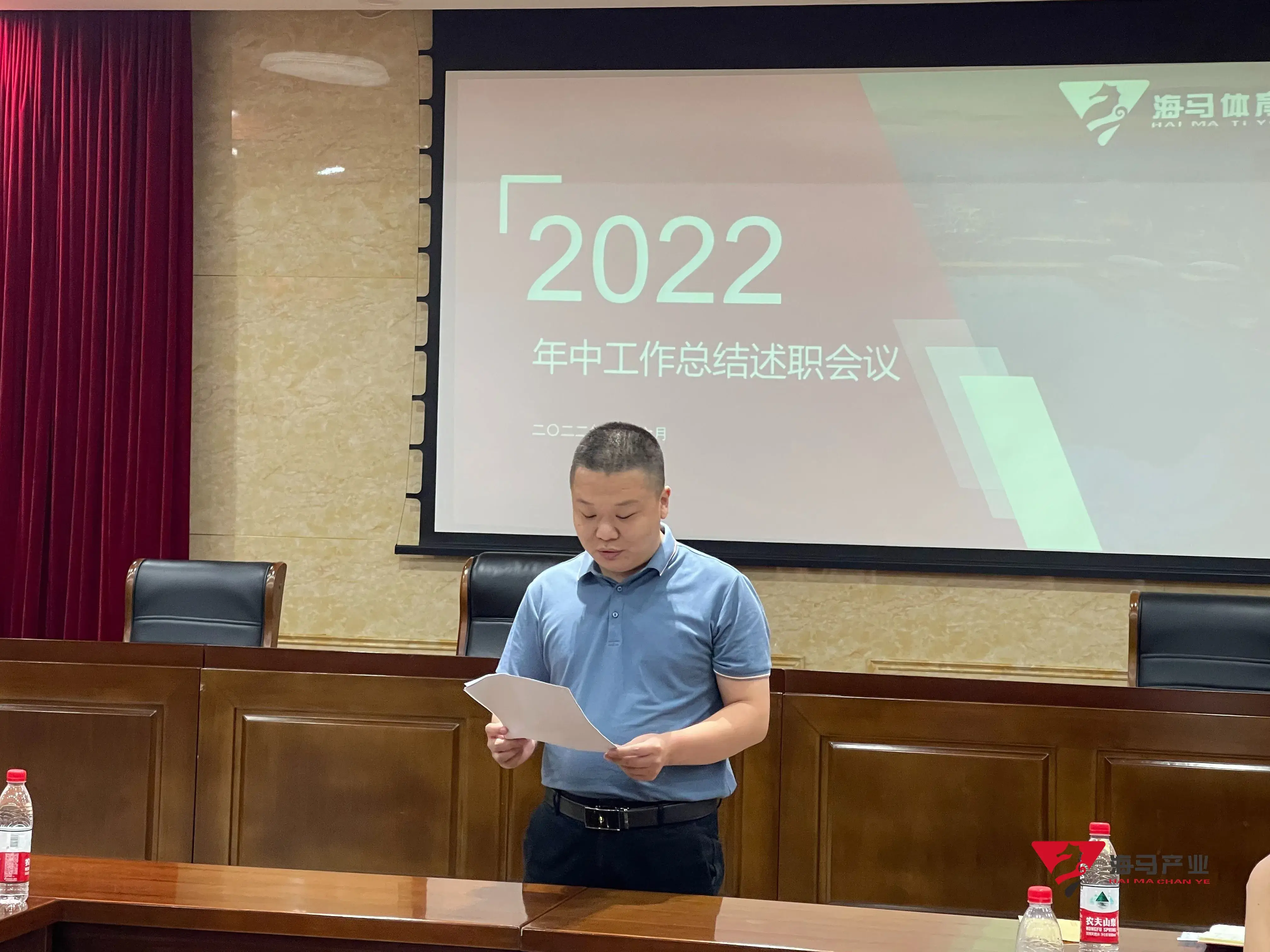 2022年6月29日下午,非凡娱乐文化产业集团在山东省体育中心二楼会议室召开年中工作总结述职会议,会议对上半年工作成果进行了总结汇报,并就下半年重点工作进行部署。总经理王海民出席了本次会议。会议由综合管理部负责人王永健主持。